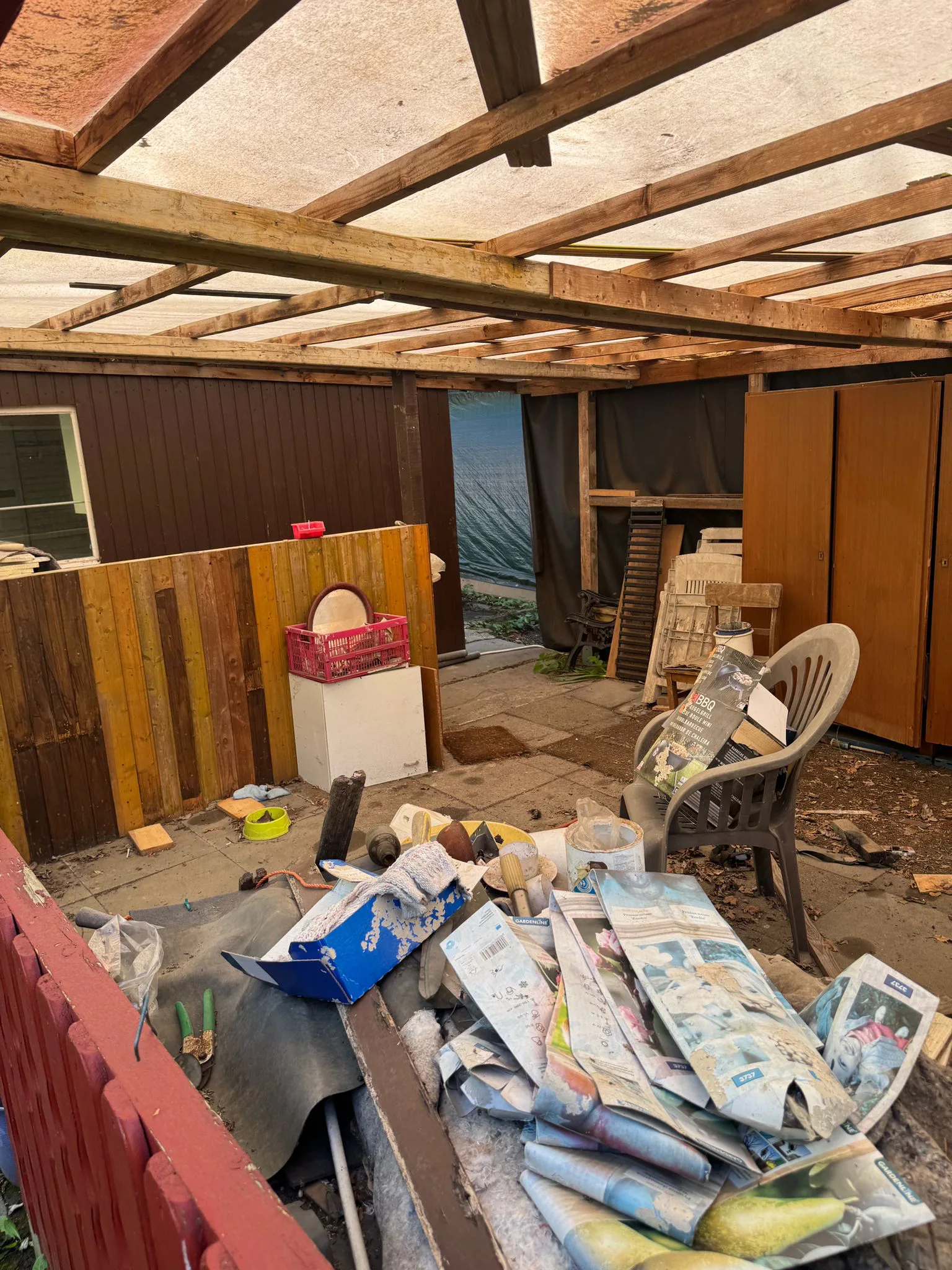 Alle Materialien sind zu entsorgen. - Die Wasserinstallationen an der Spüle in der Laube sind vollständig zu entfernen, auch wenn sie ohne Funktion sein sollten (Wasserhahn, Zu- und abfluss, Leitungen). Alle Löcher sind zu schließen.