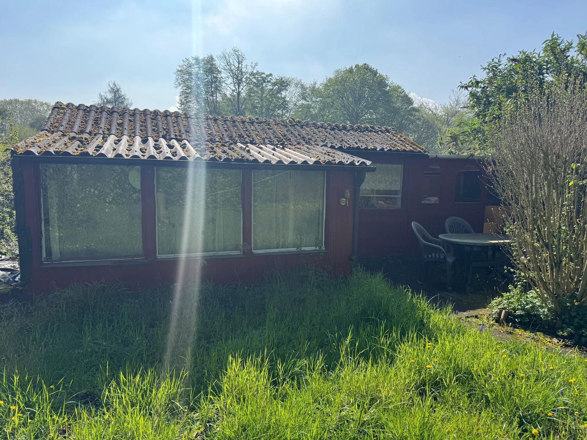 Die Baulichkeiten sind etwas großzügig dimensioniert, und es befinden sich noch Wasserinstallationen in der Laube.